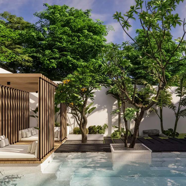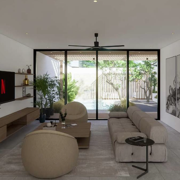 A modern and luxurious house featuring a spacious open-plan layout, comfortable bedrooms, and a stunning outdoor pool area. The house is designed with a focus on comfort, style, and natural living, offering a premium living experience.