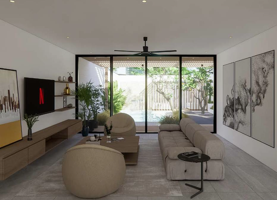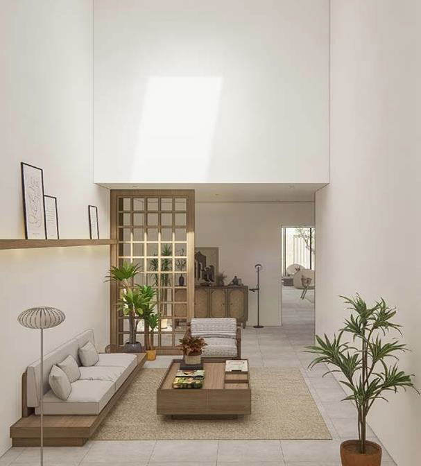 A modern and luxurious house featuring a spacious open-plan layout, comfortable bedrooms, and a stunning outdoor pool area. The house is designed with a focus on comfort, style, and natural living, offering a premium living experience.